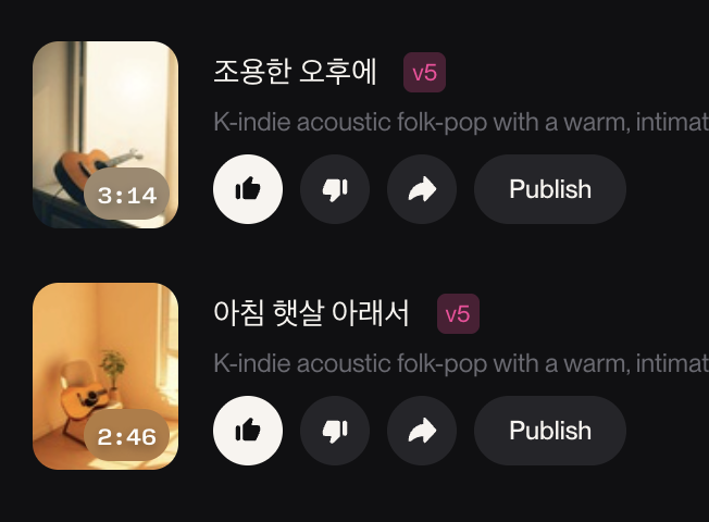 v5가 멜로디나 노래 느낌이 내가 원하는 느낌에 더 가까이 잘 나왔다.