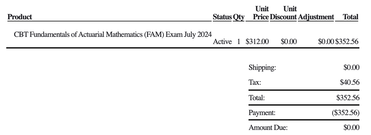 나도 학생할인 받아서 2024년 7월 시험 기준, 312+tax 해서 352불 냈다. (대충 50만원정도)