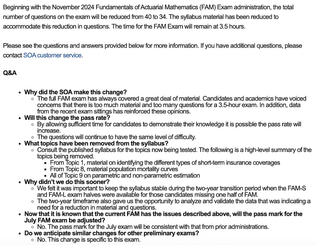 저번에 말했듯이 이번에는 조금 더 주관적인 SOA FAM 후기를 가져왔다.[이 글은 FAM 개편 전 2024년 11월 시험 후기이다] 약간 주저리주저리 댈 예정이니 정보글이 필요하신 분들은 이전 글 참고하면